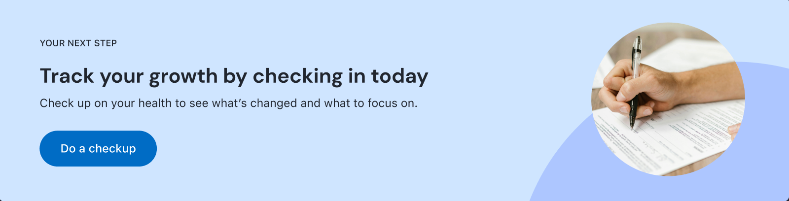 Members can take as many health checkups as they’d like or need throughout their journey at Modern Health from their Home Page under the section titled “Your well-being” and tap “Do a checkup”.