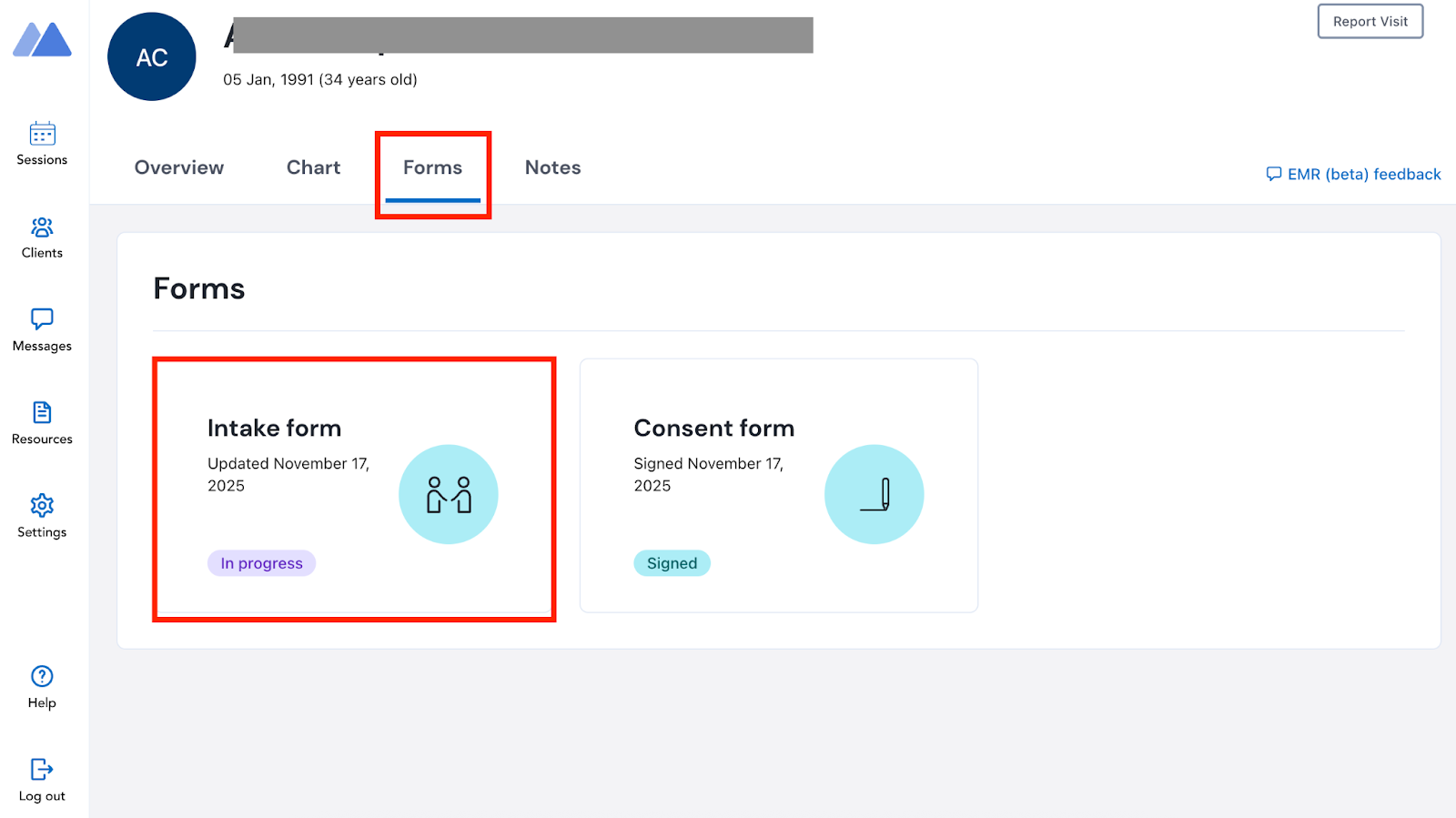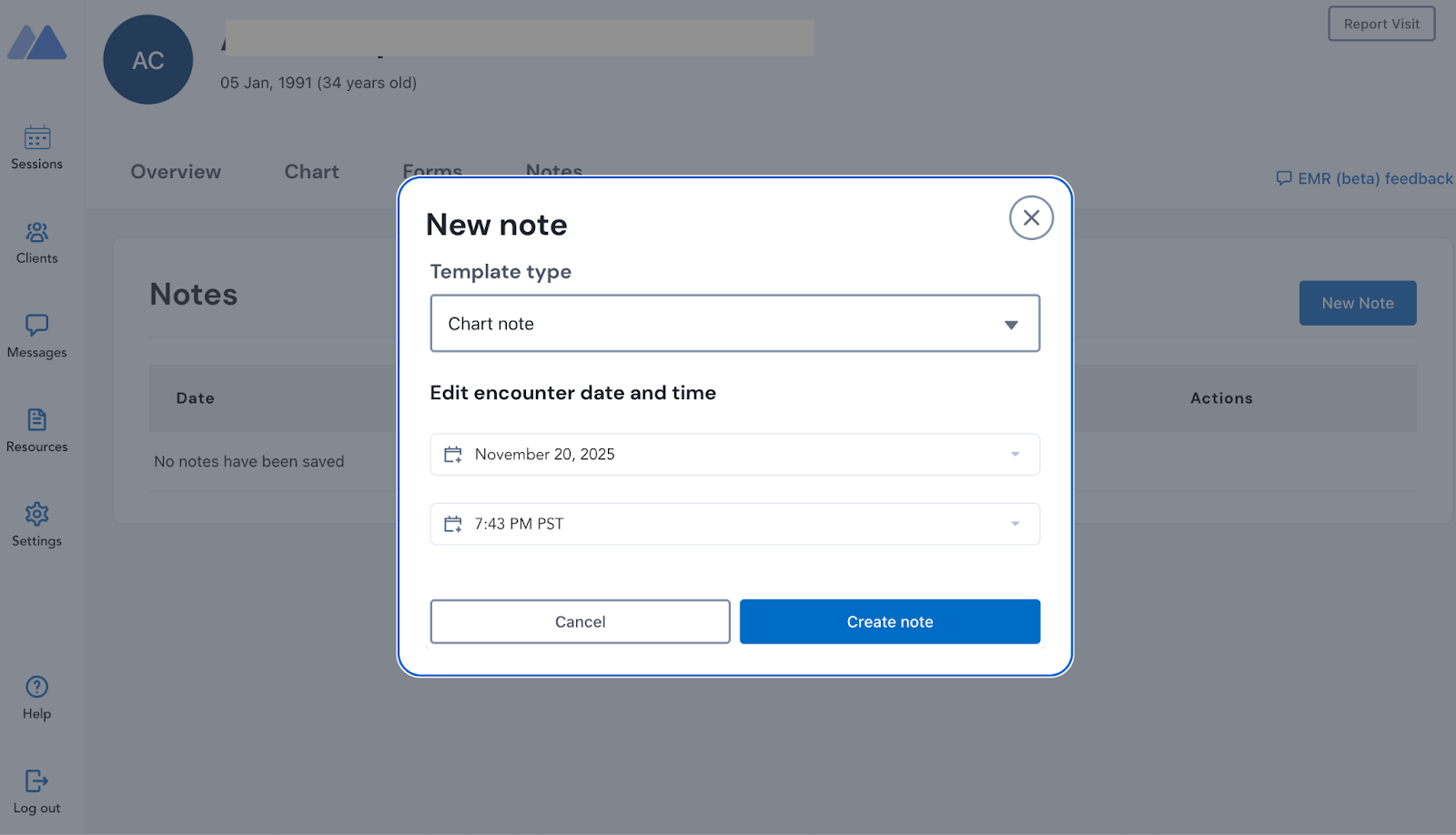 - Session Notes correlate directly to clinical appointments.