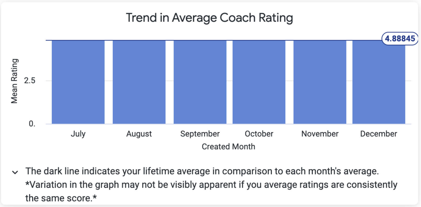 - This graph is your rolling monthly average rating. If you are consistently rated very high, you may not see much fluctuation month over month in the graph. The average on the line in the top right of the chart is the average rating across the past 6 months.